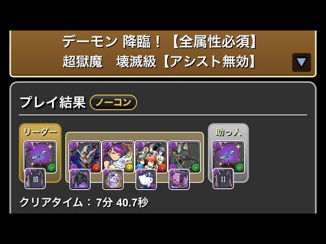 デーモン 降臨!【全属性必須】超獄魔壊滅級 【アシスト無効】#パズル #パズドラ #イベント #降臨 #デーモン