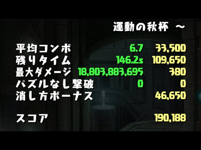 【ランダン】運動の秋杯 190,188点(0.1%) ランダン 2025.10.09 2025.10.07 19万乗れば0.1%逃げきれそう #ランダン #パズドラ #ランキングダンジョン #運動の秋杯