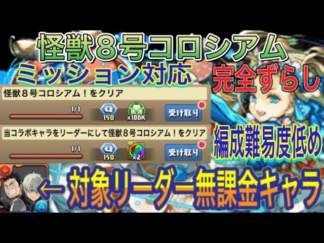 #パズドラ #怪獣8号コロシアム #バレンタインノア #ミッション #対象リーダー #無課金リーダー #ずらし #簡単攻略 #高速周回 #アシスト簡単 #編成難易度低め #怪獣8号コラボ
