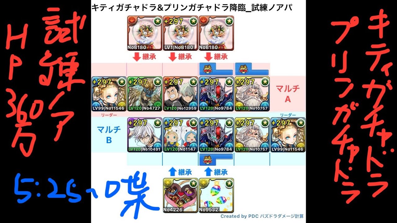 [パズドラ]サンリオコラボ_ キティガチャドラ&プリンガチャドラ降臨_試練ノア無課金2人マルチ周回パ[パズル&ドラゴンズ]