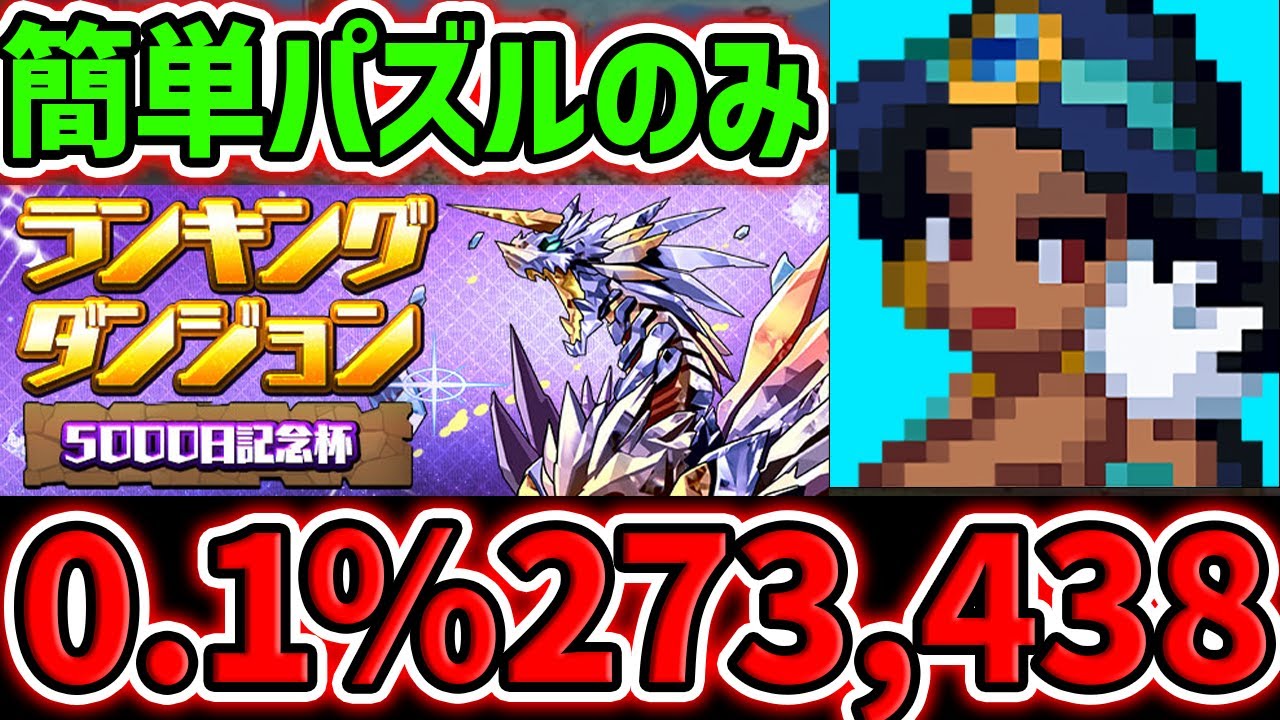 【これが一番強いです】0.1%27.3万点↑ずらし&固定パズルで王冠確定! ランキングダンジョン 5000日記念杯 【パズドラ】