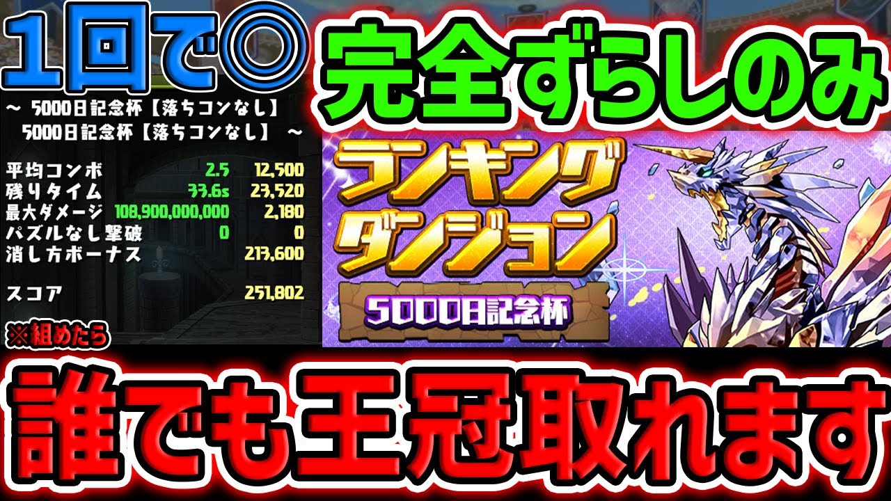 完全ずらしで王冠ゲット!究極の裏技編成が最強でした!ランキングダンジョン 5000日記念杯【パズドラ】