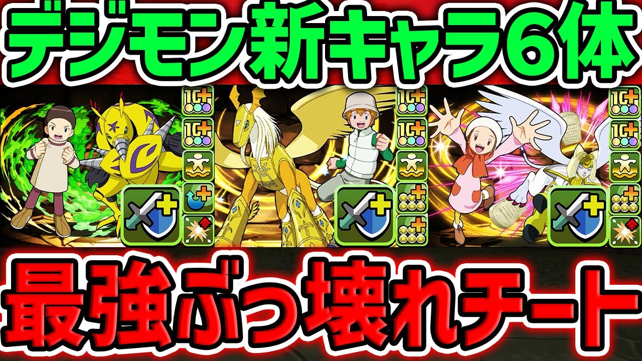 【最強確定】デジモンコラボ新キャラ6体性能解説!新スキル「ドロップ破壊」やシールド2枚同時破壊も!?【パズドラ】