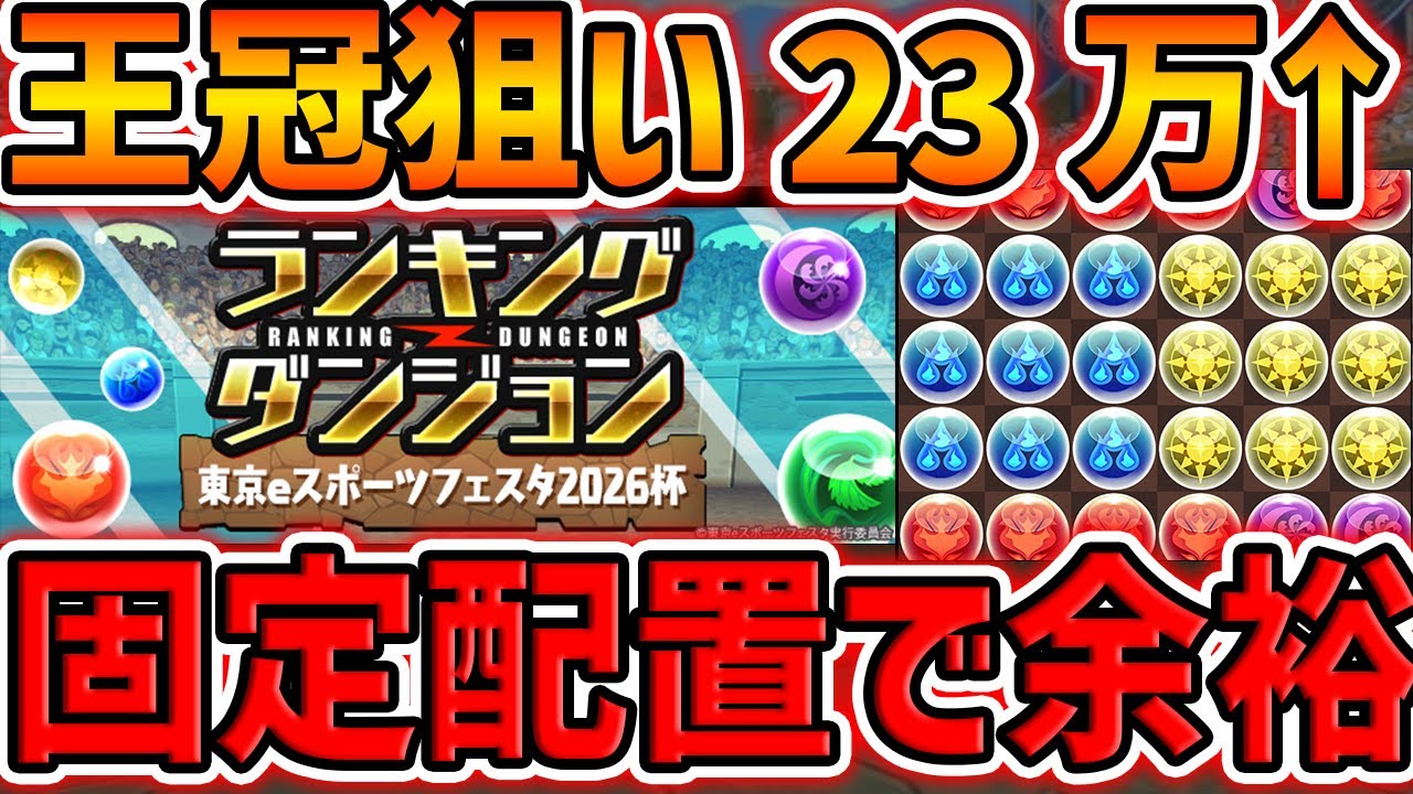 固定配置×7回で王冠余裕ゲット!これ見れば誰でもクリア出来ます!ランダン 東京eスポーツフェスタ2026杯【パズドラ】
