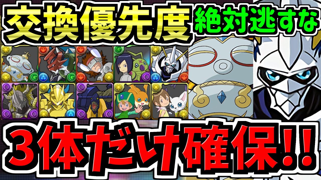 【マジ3体絶対確保】特に新キャラ○○は絶対逃すな!交換優先度ランキング!デジモンコラボ交換所解説!最強キャラを逃さず確保しよう!【パズドラ】