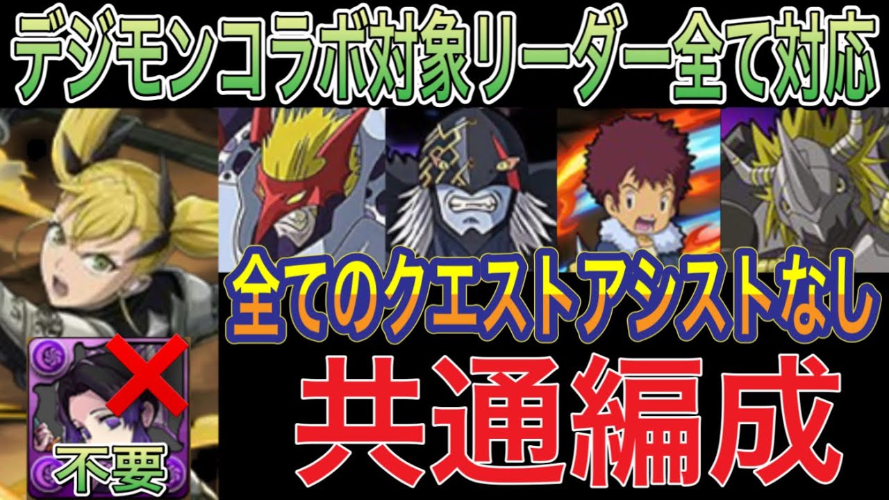 【アシストなし 共通編成 対象リーダー対応】ベリアルヴァンデモン降臨とアポカリモン降臨とデジモンシリーズコロシアムと初級編Lv5をずらしキコル編成で簡単攻略!アシスト不要の共通編成でクリア【パズドラ】