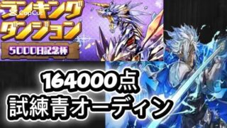 ランダン 【大革命】ランダン!誰でも”ずらし,固定パズル”で王冠余裕!27.3万点↑青オーディン編成!5000日記念杯【パズドラ】
